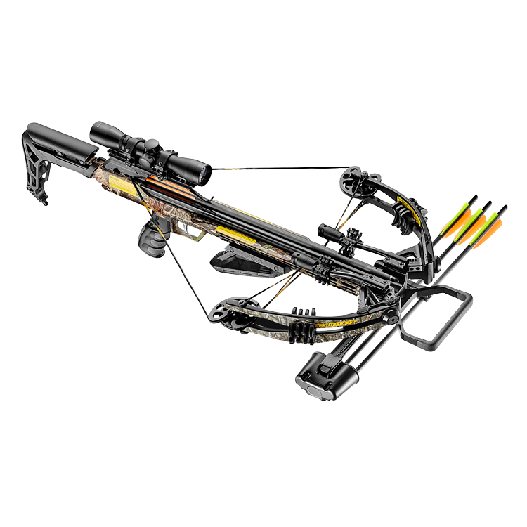 Artikelnummer: 64530430 Armbrust Set A.C.C.E.L. 370 CM 185 lbs 1. 4X32 CROSSBOW SCOPE 2. COCKING ROPE 3. SHOULDER SLING 4. 3-BOLT QUIVER/BK 5. GOGGLES 6. STRING STOPPER 7. 3 X20" CARBON BOLTS 8. STRING WAX Kurzfristig lieferbar € 385,00 - + Stück
