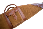 hellbraun teilweise Rauh- teilweise Glattleder zweizipp Reißverschluss. Riemen zum Umhängen seitliche Außentasche. Sehr hochwertige Ausführung. Top Preis Leistung. Geeignet für Waffen mit und ohne Zielfernrohr.