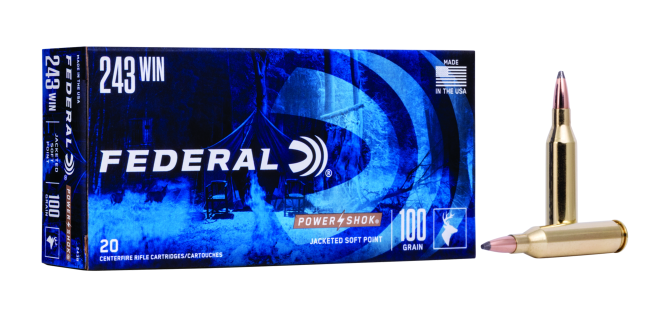- Die Federal Büchsenmunition .243 Win. 6,50g Spitzer Soft Point Power Shok ist ideal für die Jagd und den Schießsport.