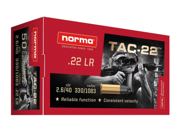 Die Norma .22 LR TAC-22 40 gr. - 50 Stk. ist eine echte Allround-Patrone. Die Performance entspricht etwa der GECO-KK-Linie, die Leistung liegt zwischen Rifle und Semi Auto. Die hochwertige Randfeuerpatrone eignet sich vom Plinking bis zum Matchschießen.