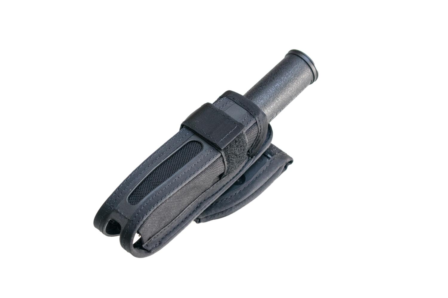 Der Einsatzstock lässt sich durch einen moderaten Schwung aus dem Handgelenk genauso öffnen, wie durch Ziehen an der Spitze. Das Schließen erfolgt durch Zusammenschieben der Teilstäbe nach Eindrücken des Auslöseknopfs am hinteren Griffende. Die Schlagenergie wird durch das gummibesetzte Griffstück und die Gleitringe am Übergang der einzelnen Teilstücke absorbiert.