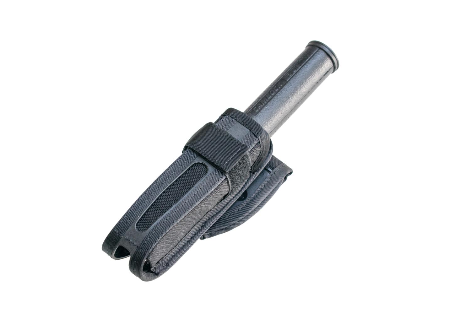 Der Einsatzstock lässt sich durch einen moderaten Schwung aus dem Handgelenk genauso öffnen, wie durch Ziehen an der Spitze. Das Schließen erfolgt durch Zusammenschieben der Teilstäbe nach Eindrücken des Auslöseknopfs am hinteren Griffende. Die Schlagenergie wird durch das gummibesetzte Griffstück und die Gleitringe am Übergang der einzelnen Teilstücke absorbiert.