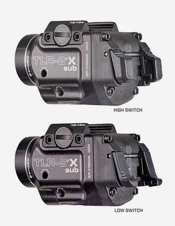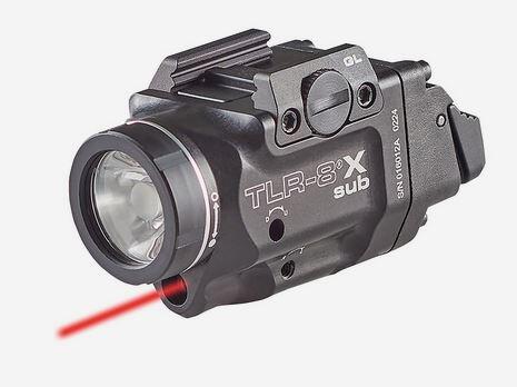 Die auf einer Unterschiene montierte Leuchte TLR-8® X akzeptiert entweder eine CR123A-Lithiumbatterie oder den über USB aufladbaren geschützten Lithium-Ionen-Akku SL-B9® von Streamlight's . Austauschbare hintere Paddelschalter passen sich Ihrem Schießstil an.