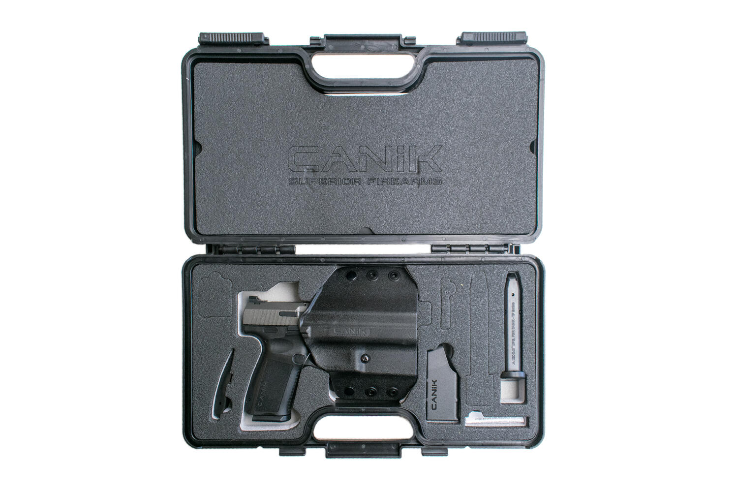 Das Modell TP9 SF Elite ist ein mittelgroßes Modell der TP-Serie mit einer Magazinkapazität von 15 Schuss. Das Modell trägt den Titel „Elite“ aufgrund seines beidhändigen Verschlussstopps, des brandneuen Abzugssicherheitsmechanismus, der Warren-Glasfaservisierung und des geschlossenen Schlagabdeckungsmechanismus sowie seiner verkürzten Griffgröße. Das im Vergleich zur vorherigen TP-Serie modifizierte Rahmendesign sorgt für ein einwandfreies Schießkomforterlebnis. Neben dem bequemen Tragegefühl dank seiner Größe wird die Abzugsreichweite durch ein verbessertes Design der Abzugssicherheit verkürzt, und daher wird der Schießkomfort von Schützeninnen entsprechend berücksichtigt. Das standardmäßige Glasfaserkorn und die geschwärzte Kimme des Scott Warren-Designs ermöglichen es Schützen, die Ziele schnellstmöglich von einem zum anderen zu wechseln. Genau wie bei allen Waffen der TP-Serie; Der Koffer wird standardmäßig mit einem Holster, einer größeren Rücklaufsperre und einem Speedloader sowie 2 Magazinen der Marke Mec-Gar geliefert.