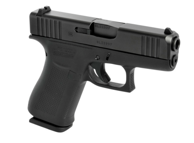 Die G43X in 9 mm Luger hat einen kompakten Slimline-Rahmen mit einem schwarzen Schlitten. Die Magazinkapazität von 10 Schuss macht sie ideal für das verdeckte Tragen.