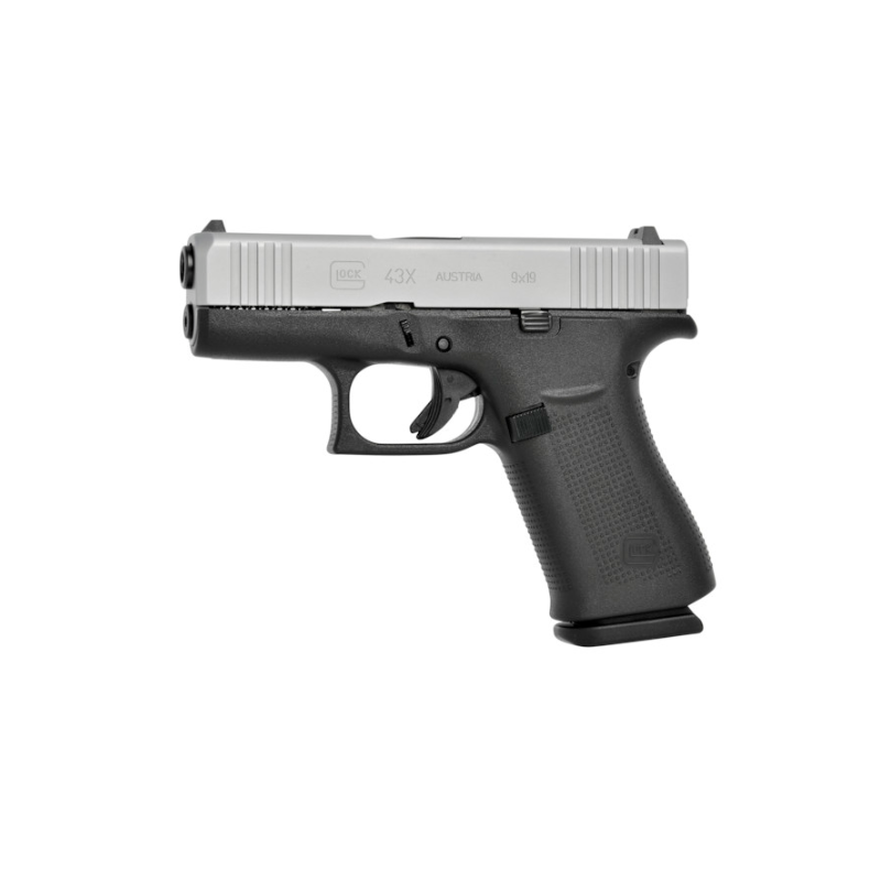 Der silberfarbene Schlitten des G43X kombiniert seine kurzen und schlanken Abmessungen mit der erweiterten schlanken Rahmengröße des G48. Eine perfekt ausbalancierte schmale Passform für fast alle Handgrößen mit einer zufriedenstellenden Magazinkapazität und hoher Verdeckbarkeit.